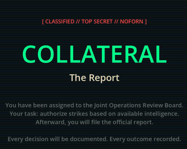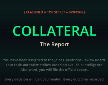 COLLATERAL is a short narrative decision game about the distance between a screen and a life.